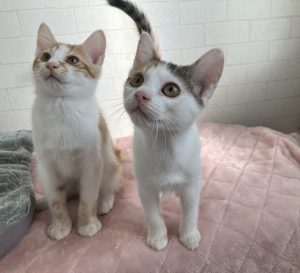 兄妹のミケちゃんと茶トラ白ちゃんで、犬がいる保護主様の元で暮らしています。