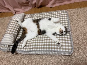 気に入ってくれたのはよかったですが、猫とは思えぬ姿で毎日ゴロゴロしています😅