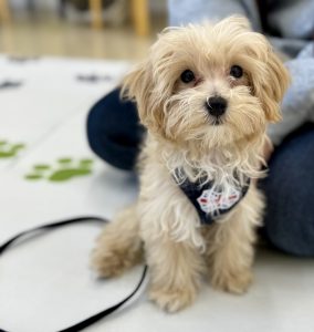 今回初参加!ちょっと緊張気味ですが、しっかりと「おいで」やクン活できたにこまるくん♡