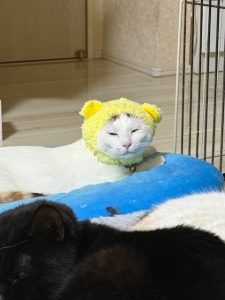 こちらは我が家で唯一被り物をさせてくれる末っ子まろちゃんです🐱